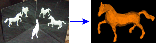 This page illustrates our method of forming visual hulls from uncalibrated snapshots using two planar mirrors. For more details please read our paper.